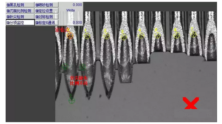 小結(jié):基于機器視覺技術(shù)的一次性注射器針尖外觀檢測系統(tǒng)已成功投入到生產(chǎn)流水線上使用。運行數(shù)據(jù)顯示,該系統(tǒng)檢測時間范圍(單次“拍照+處理”總時間)在100-120ms,無漏檢;誤檢率不超過千分之五。