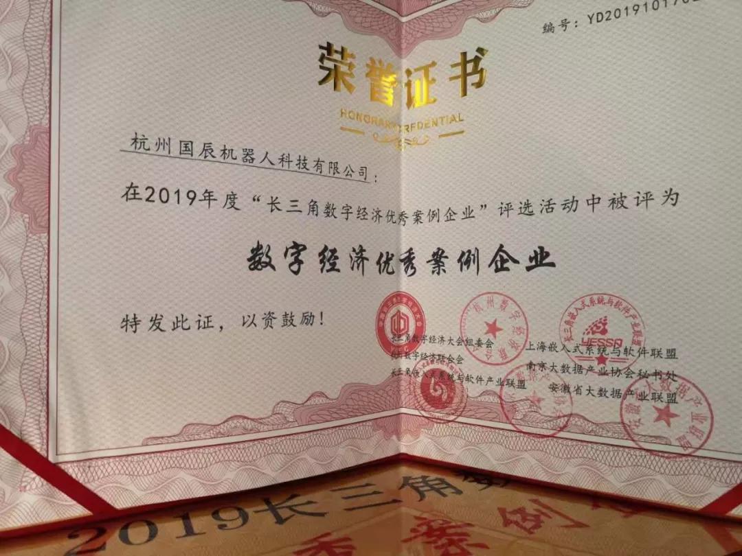 喜訊丨國(guó)辰機(jī)器人榮獲“2019長(zhǎng)三角數(shù)字經(jīng)濟(jì)優(yōu)秀企業(yè)”稱(chēng)號(hào)