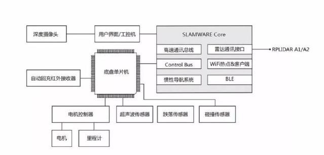內(nèi)部結(jié)構(gòu)中,主要由激光雷達(dá)傳感器、深度攝像頭、超聲波及防跌落傳感器,模塊化定位導(dǎo)航系統(tǒng)SLAMWARE、等核心硬件組成。使其擁有可靠、易用的自主定位導(dǎo)航解決方案,多傳感器融合配合導(dǎo)航算法,能更靈活的規(guī)劃機(jī)器人行走路線。
